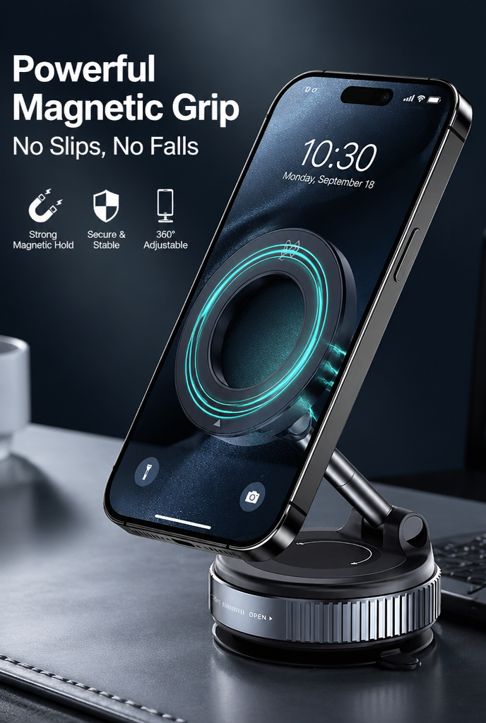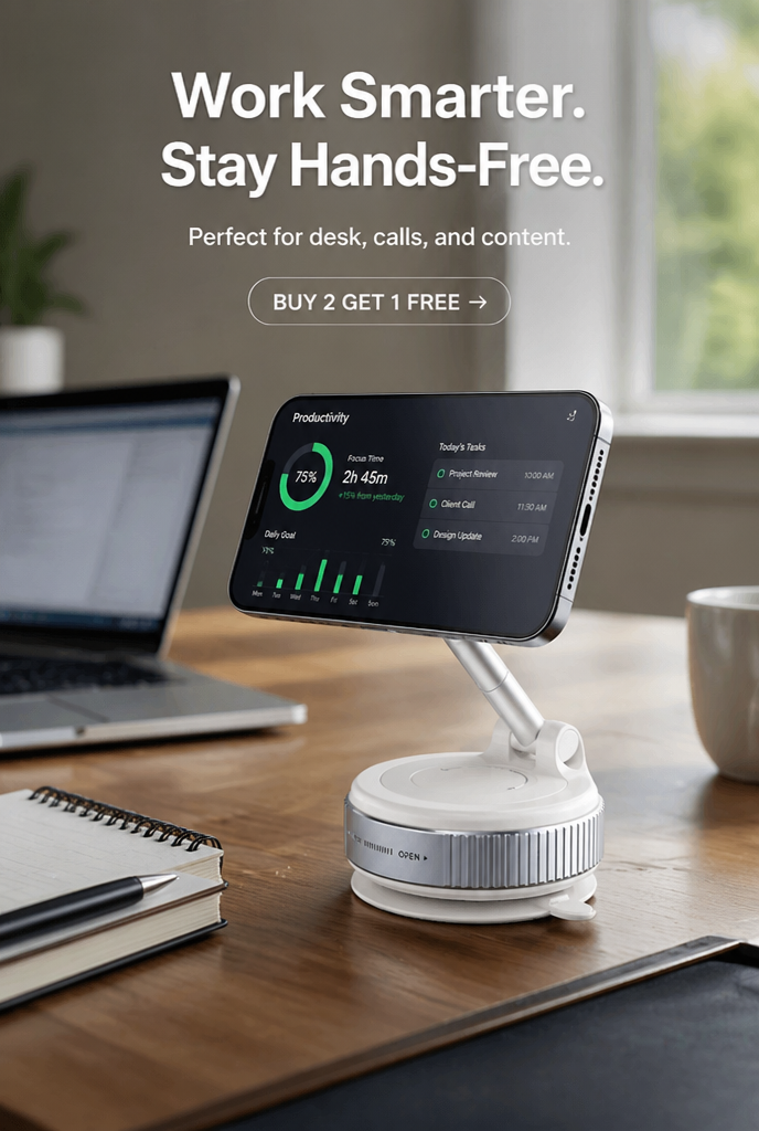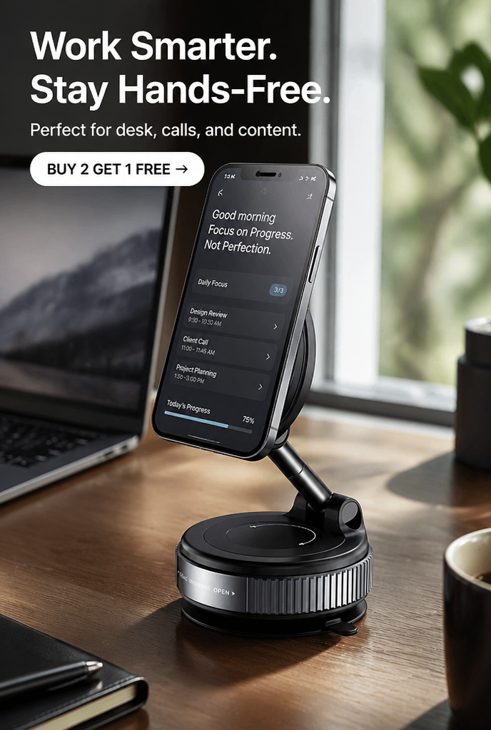 “This is honestly one of the most useful accessories I’ve bought. I use it in my car for navigation, at home while cooking, and even at my desk for calls. The grip is super strong and it’s so easy to move around. Feels premium and actually solves a real problem.”
